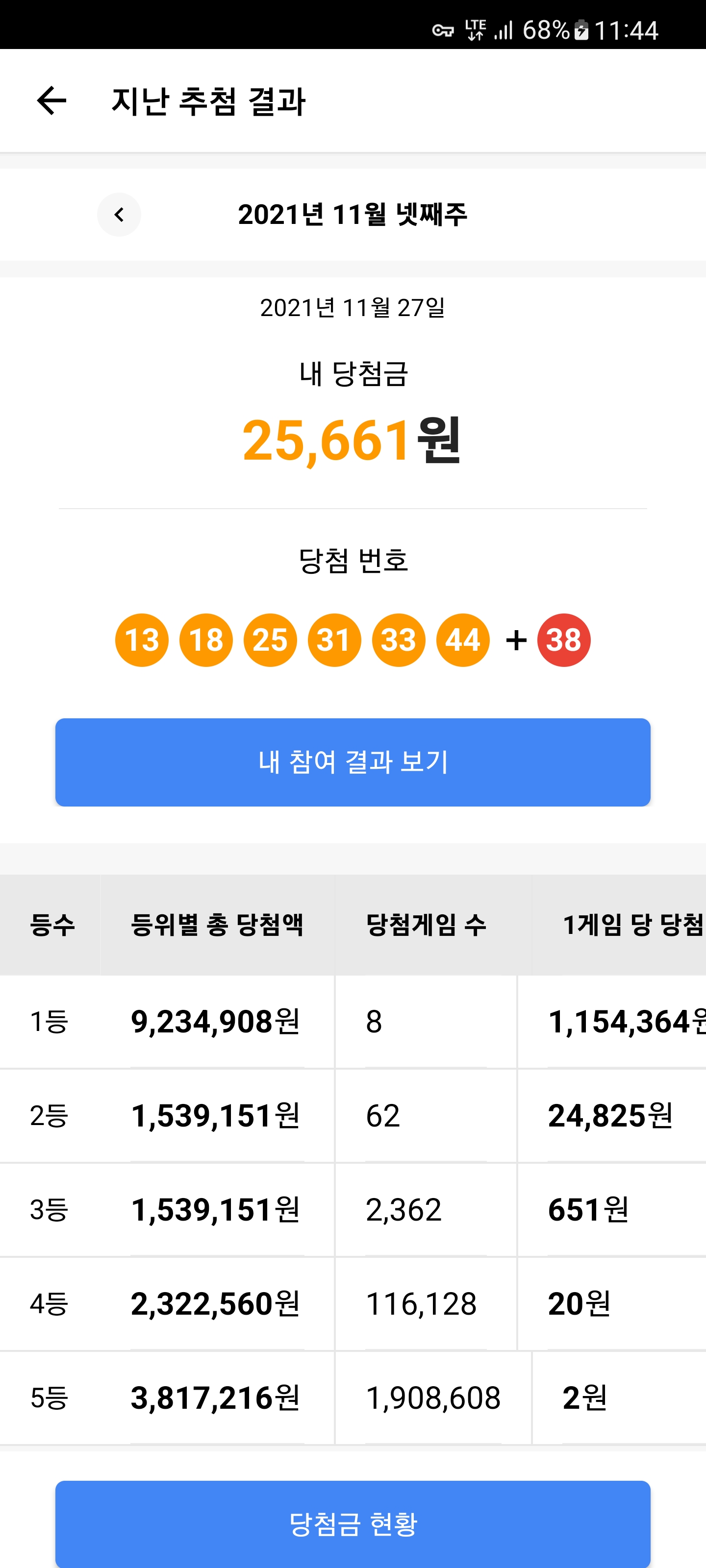 2등 당첨했네요 기분 좋아요.