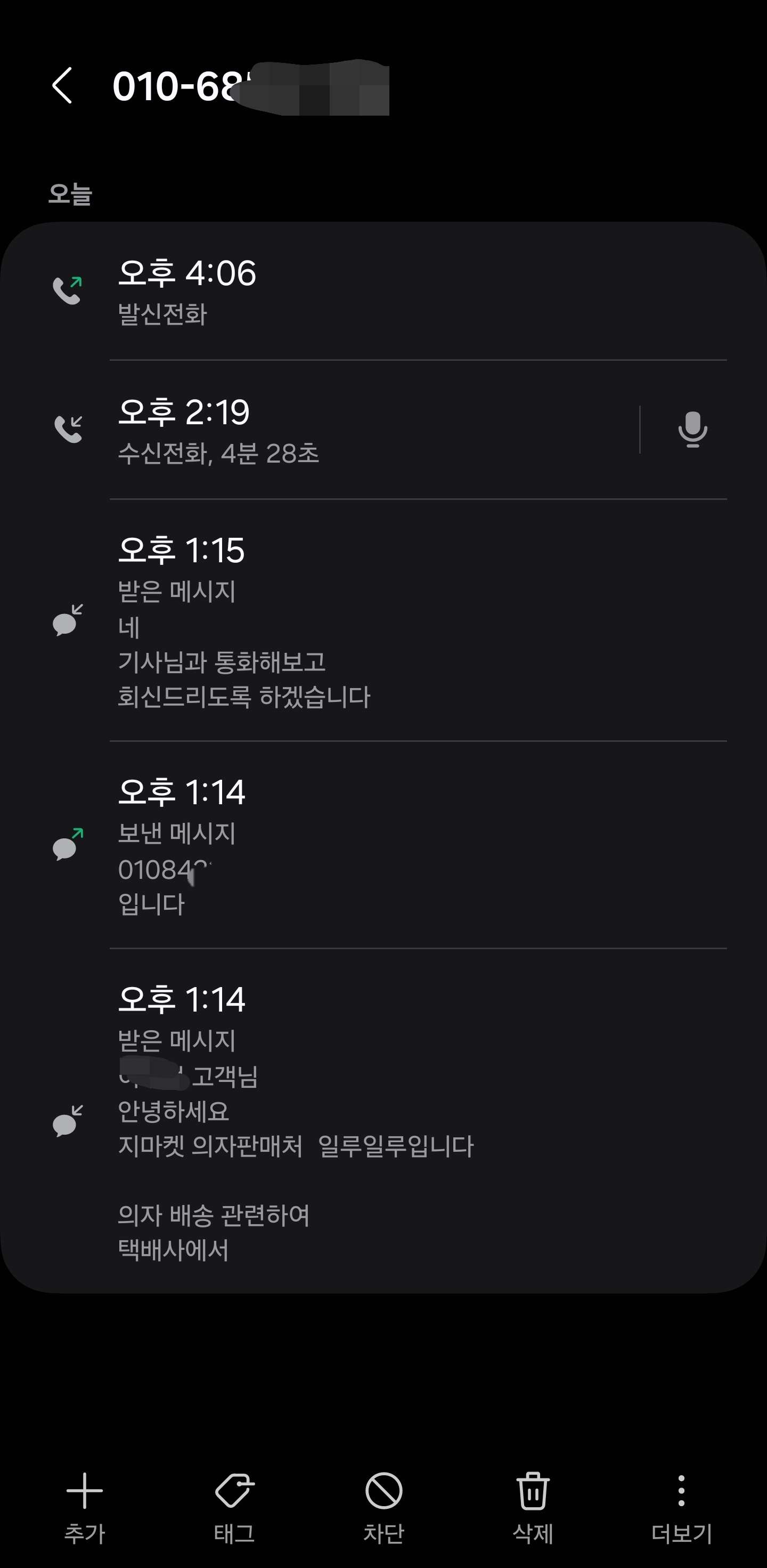 택배직원 전화 번호 물어봐서 문자로 보내드림 통화후 알려주신다고 했음 나는 그 동안